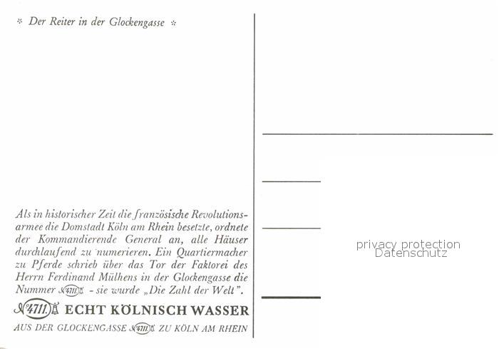 72891046 Koeln Rhein Der Reiter in der Glockengasse Gemaelde postalisch nicht gelaufen Erhaltung siehe scans [WerneD78] KatCode: 11110005315000
