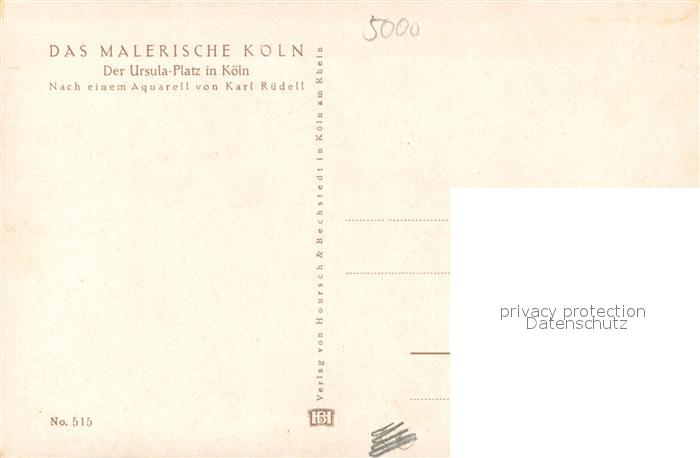 73691029 Koeln Rhein Der Ursula Platz Aquarell postalisch nicht gelaufen Erhaltung siehe scans [WerneD78] KatCode: 11110005315000