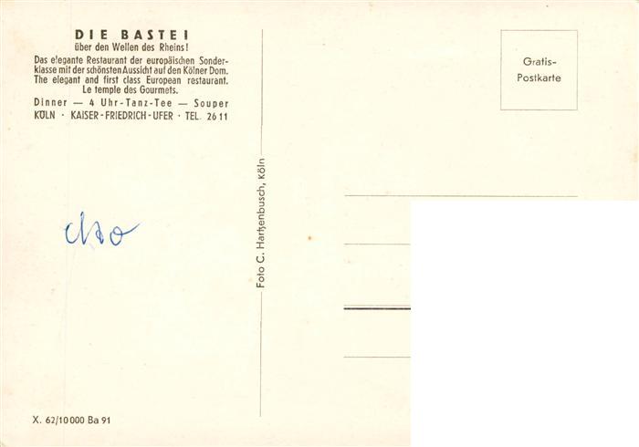 73894178 Koeln Rhein Die Bastei Restaurant postalisch nicht gelaufen Erhaltung siehe scans [FriedD77] KatCode: 11110005315000