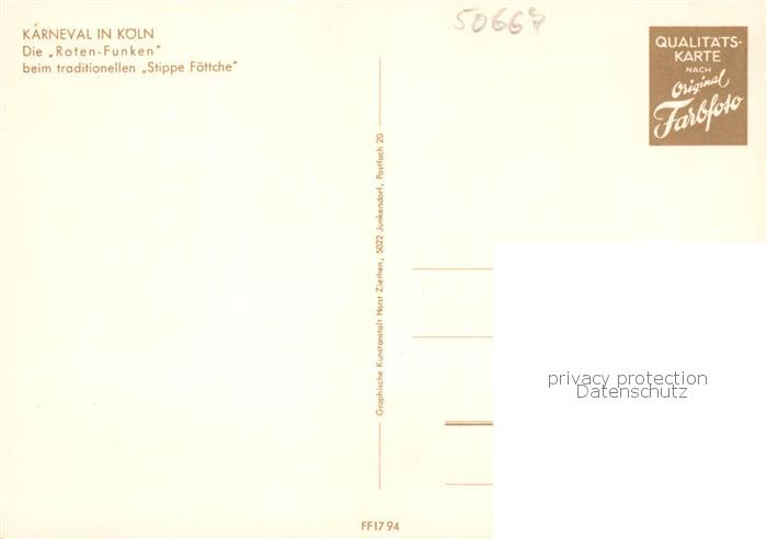 73865195 alte Postkarte Koeln Rhein Die Roten Funken beim traditionellen Stippe Foettche postalisch gelaufen Erhaltung siehe scans [WerneD78] KatCode: 11110005315000