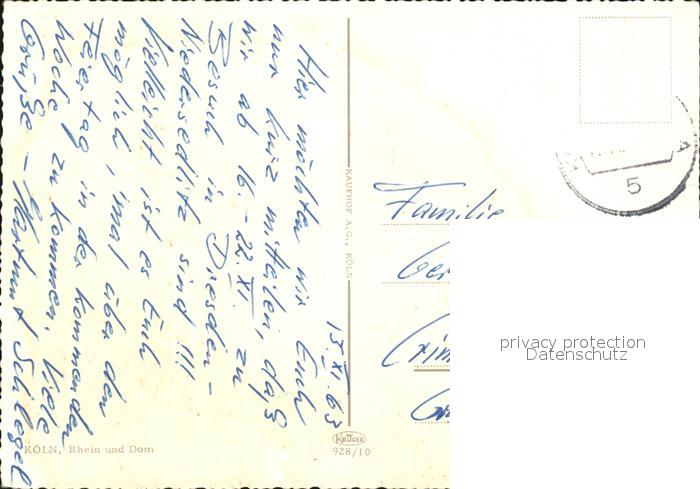 72454468 alte Postkarte Koeln Rhein Dom postalisch gelaufen Erhaltung siehe scans KatCode: 11110005315000