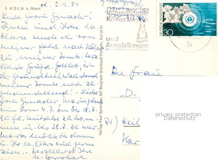 73024406 alte Postkarte Koeln Rhein Dom postalisch gelaufen Erhaltung siehe scans [PaolaD17] KatCode: 11110005315000