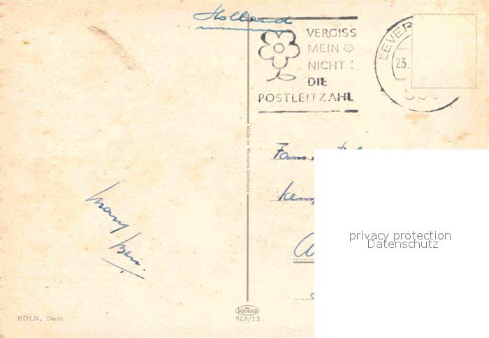 72914992 alte Postkarte Koeln Rhein Dom postalisch gelaufen Erhaltung siehe scans [FriedD77] KatCode: 11110005315000