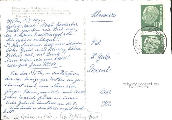 72321283 alte Postkarte Koeln Rhein Dom Dreikoenigenschrein postalisch gelaufen Erhaltung siehe scans KatCode: 11110005315000