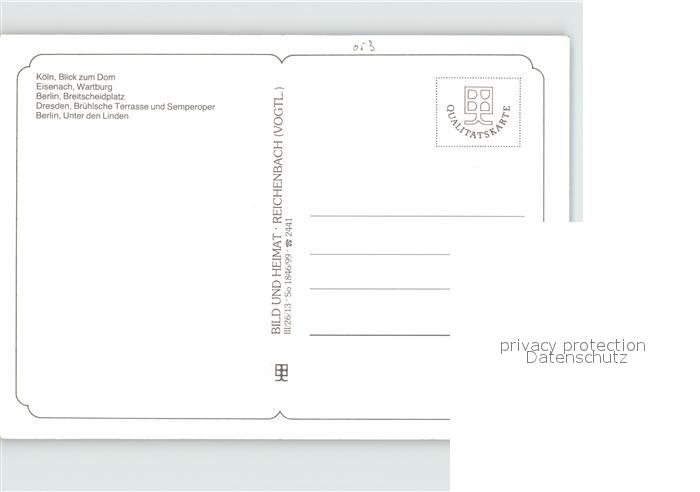 72413130 Koeln Rhein Dom Eisenach Wartburg Berlin Breitscheidplatz Dresden Bruehlsche Terrasse Semperoper Unter den Linden Tag der Wiedervereinigung 3. Oktober postalisch nicht gelaufen Erhaltung siehe scans KatCode: 11110005315000