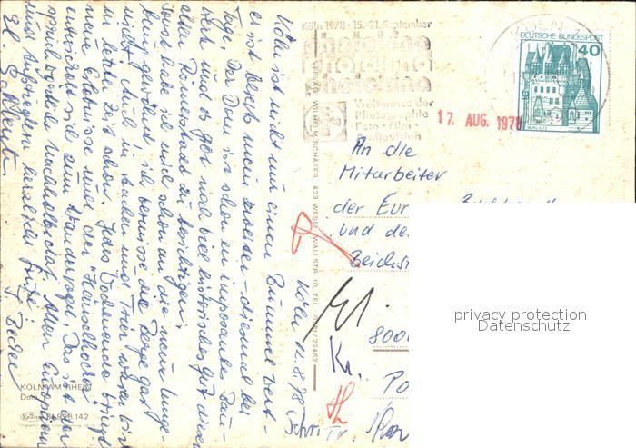 72263151 alte Postkarte Koeln Rhein Dom Fliegeraufnahme postalisch gelaufen Erhaltung siehe scans KatCode: 11110005315000