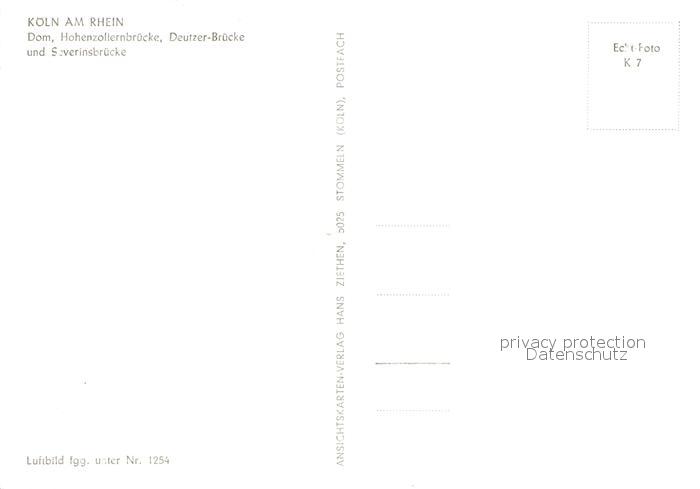 72986244 Koeln Rhein Dom Hohenzollernbruecke Deutzer Bruecke Severinsbruecke Fliegeraufnahme postalisch nicht gelaufen Erhaltung siehe scans [FriedD77] KatCode: 11110005315000