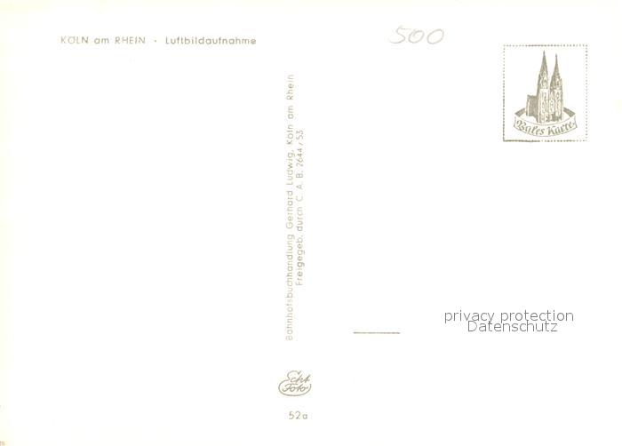 72952867 Koeln Rhein Dom Rhein Bruecke Fliegeraufnahme postalisch nicht gelaufen Erhaltung siehe scans [FriedD77] KatCode: 11110005315000