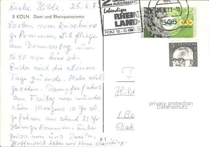 72130243 alte Postkarte Koeln Rhein Dom Rheinpanorama postalisch gelaufen Erhaltung siehe scans KatCode: 11110005315000