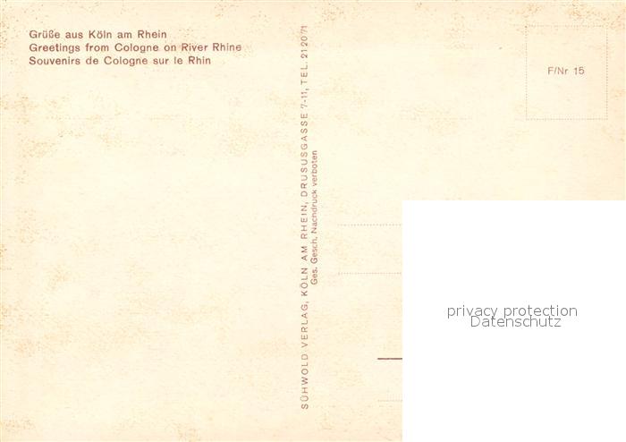 73017847 Koeln Rhein Dom Rheinpartie postalisch nicht gelaufen Erhaltung siehe scans [WerneD78] KatCode: 11110005315000