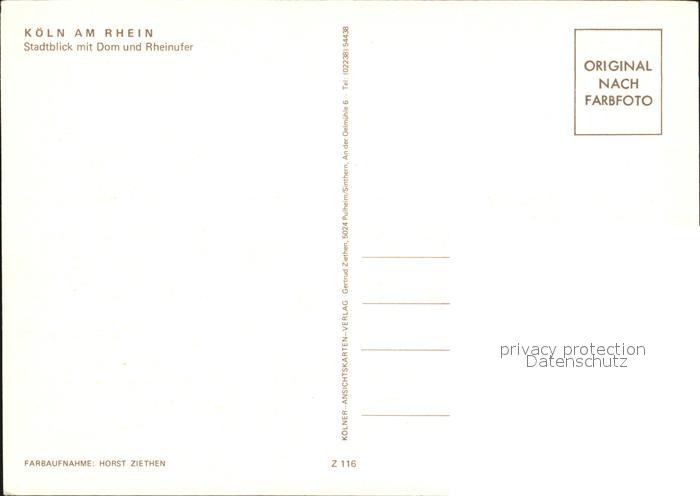 72459828 Koeln Rhein Dom Rheinufer postalisch nicht gelaufen Erhaltung siehe scans KatCode: 11110005315000