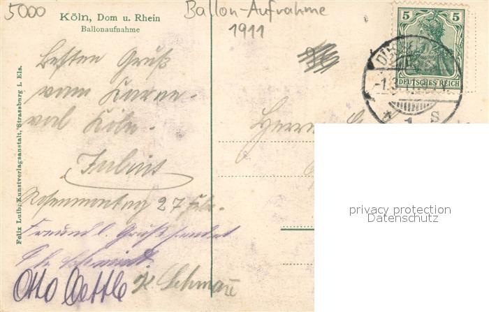 73694299 alte Postkarte Koeln Rhein Dom und Rhein Ballonaufnahme postalisch gelaufen Erhaltung siehe scans [WerneD78] KatCode: 11110005315000