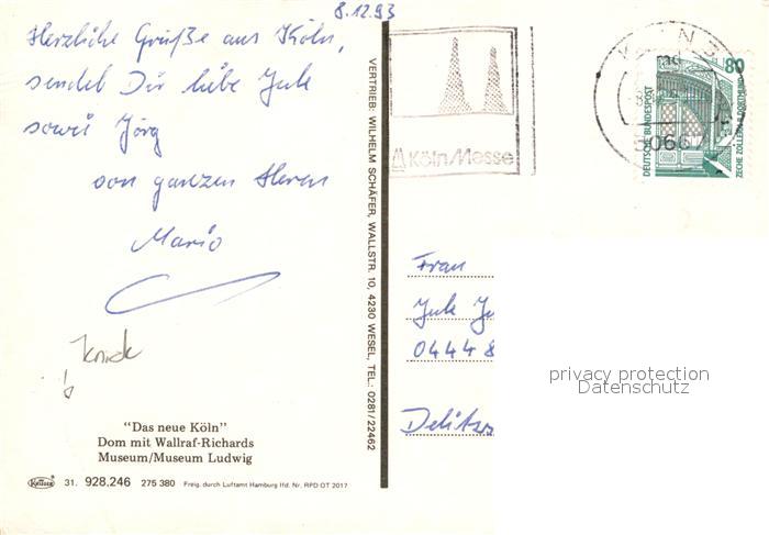 73026245 alte Postkarte Koeln Rhein Dom Wallraf-Richards Museum postalisch gelaufen Erhaltung siehe scans [PaolaD17] KatCode: 11110005315000