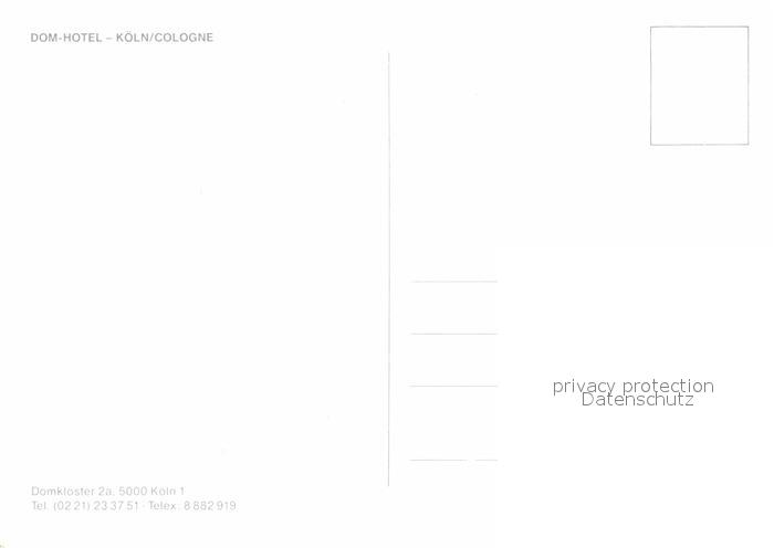 72731607 Koeln Rhein Domhotel postalisch nicht gelaufen Erhaltung siehe scans [AndreD76] KatCode: 11110005315000