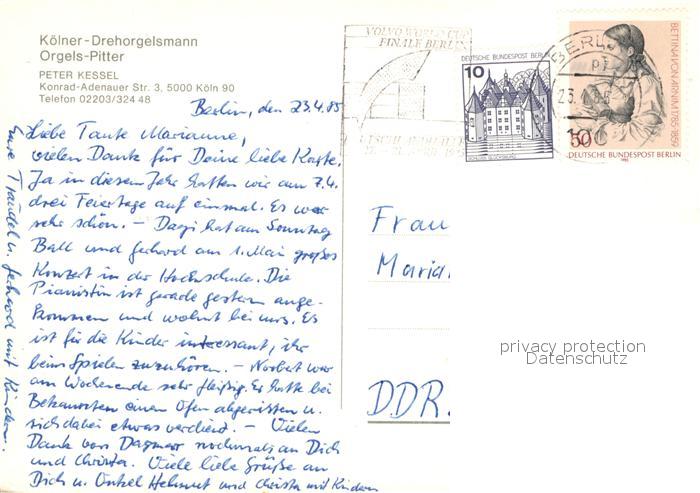 73019372 alte Postkarte Koeln Rhein Drehorgelsmann Orgels-Pitter Dom postalisch gelaufen Erhaltung siehe scans [NatalD47] KatCode: 11110005315000