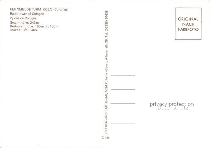 72423550 Koeln Rhein Fernmeldeturm Hochhaeuser postalisch nicht gelaufen Erhaltung siehe scans KatCode: 11110005315000