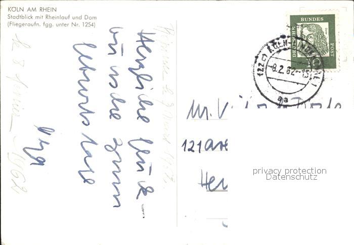 72408231 alte Postkarte Koeln Rhein Fliegeraufnahme postalisch gelaufen Erhaltung siehe scans KatCode: 11110005315000