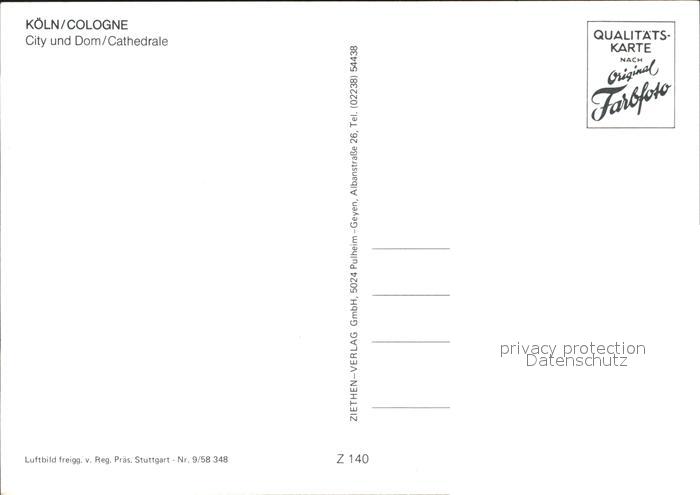 72370048 Koeln Rhein Fliegeraufnahme postalisch nicht gelaufen Erhaltung siehe scans KatCode: 11110005315000