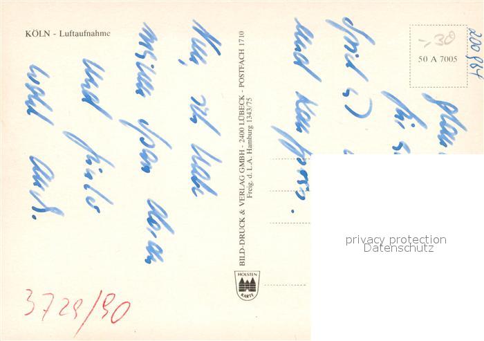73725419 Koeln Rhein Fliegeraufnahme postalisch nicht gelaufen Erhaltung siehe scans [WerneD78] KatCode: 11110005315000