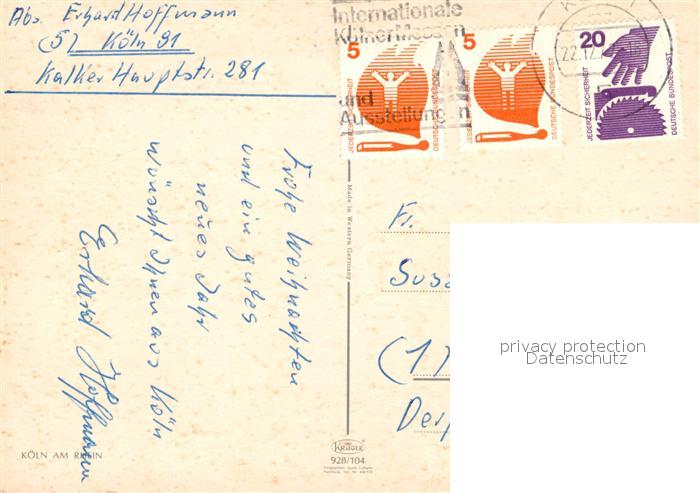 73203386 alte Postkarte Koeln Rhein Fliegeraufnahme postalisch gelaufen Erhaltung siehe scans [NatalD47] KatCode: 11110005315000