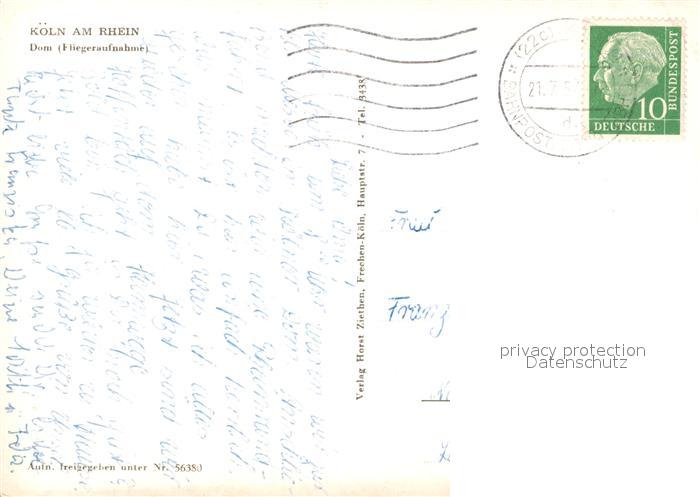 73162793 alte Postkarte Koeln Rhein Fliegeraufnahme Dom postalisch gelaufen Erhaltung siehe scans [KathaD81] KatCode: 11110005315000