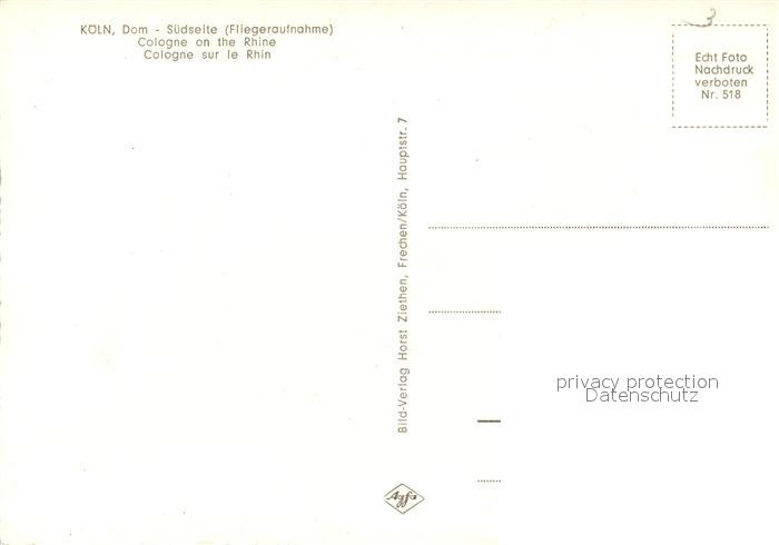 73097216 Koeln Rhein Fliegeraufnahme Dom postalisch nicht gelaufen Erhaltung siehe scans [KathaD81] KatCode: 11110005315000