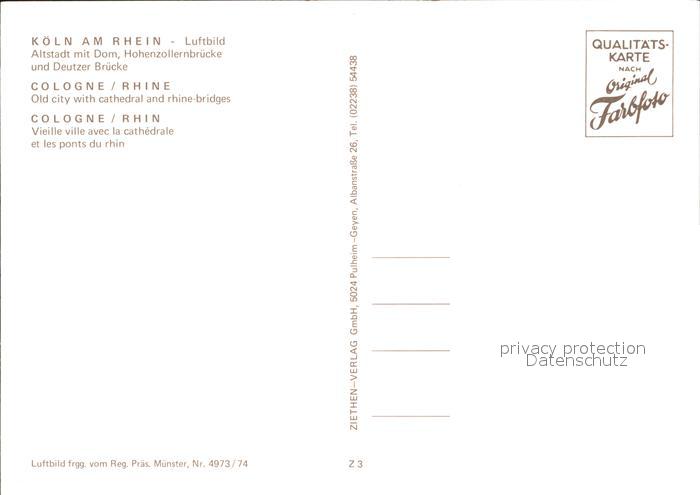 72375727 Koeln Rhein Fliegeraufnahme Dom Altstadt Hohenzoller- und Deutzer Bruecke postalisch nicht gelaufen Erhaltung siehe scans KatCode: 11110005315000