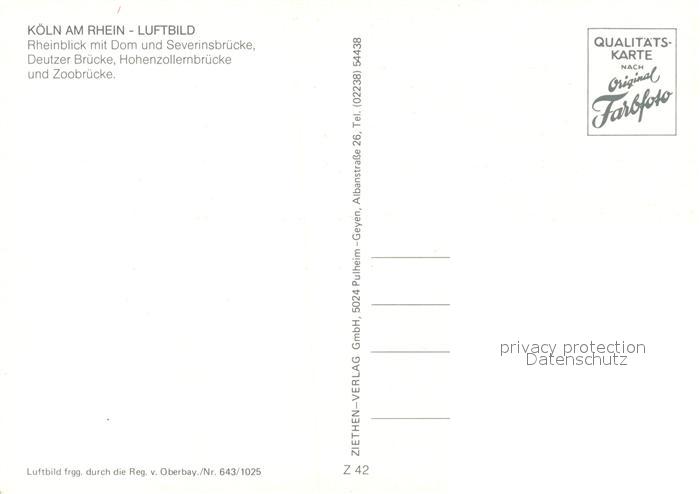 73062778 Koeln Rhein Fliegeraufnahme Dom Hohenzollernbruecke postalisch nicht gelaufen Erhaltung siehe scans [KathaD81] KatCode: 11110005315000