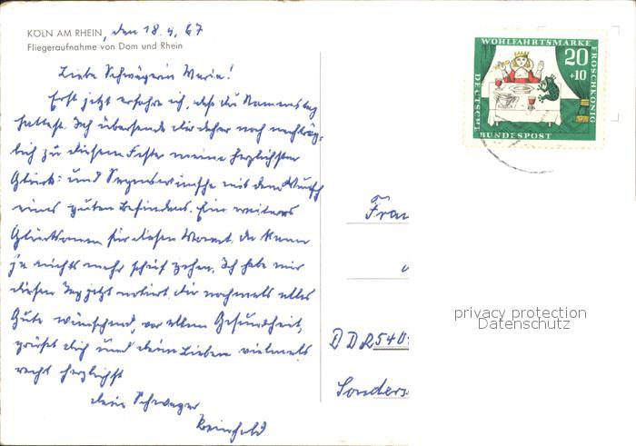 71944720 alte Postkarte Koeln Rhein Fliegeraufnahme Dom Rhein postalisch gelaufen Erhaltung siehe scans KatCode: 11110005315000