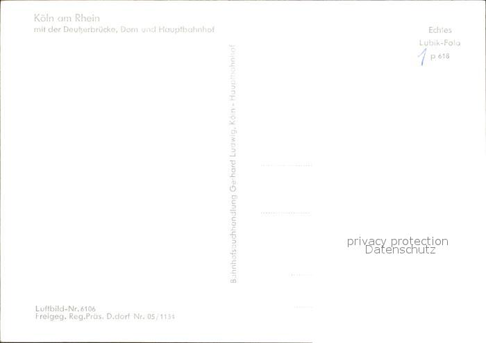 72010596 Koeln Rhein Fliegeraufnahme Dom und Rheinpartie postalisch nicht gelaufen Erhaltung siehe scans KatCode: 11110005315000