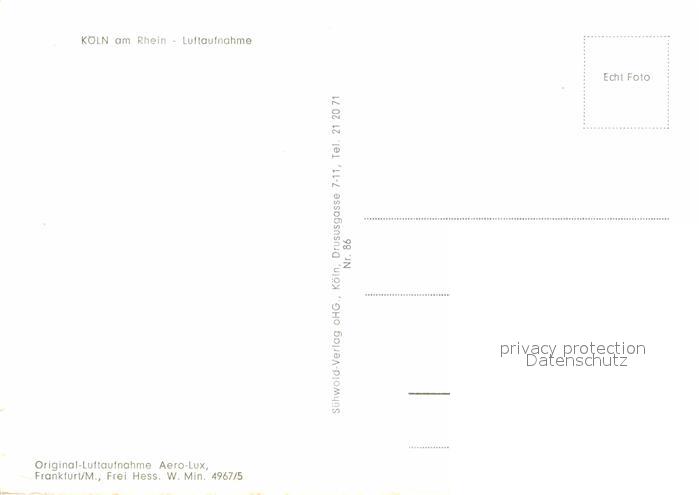 72691530 Koeln Rhein Fliegeraufnahme Dom und Rheinpartie postalisch nicht gelaufen Erhaltung siehe scans [LiesaD40] KatCode: 11110005315000