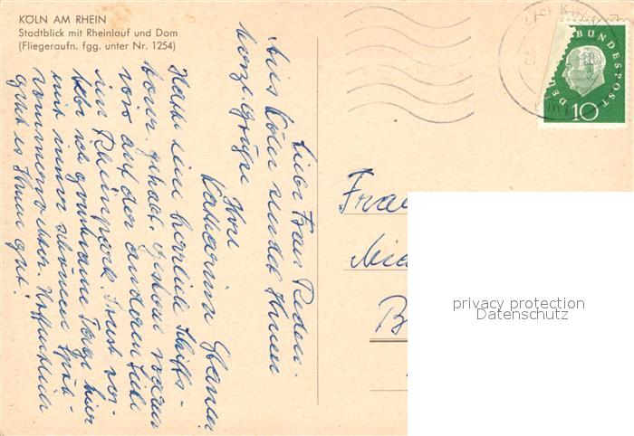 73174807 alte Postkarte Koeln Rhein Fliegeraufnahme Dom postalisch gelaufen Erhaltung siehe scans [NatalD47] KatCode: 11110005315000