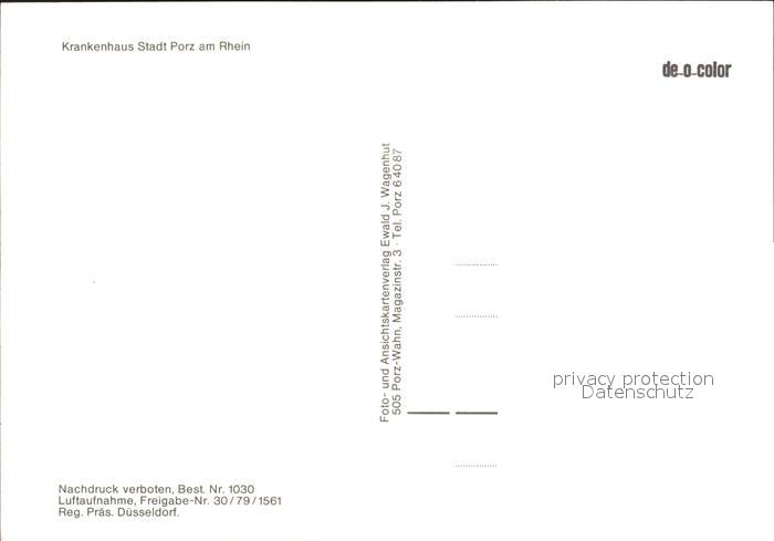 72113152 Koeln Rhein Fliegeraufnahme Krankenhaus Stadt Porz postalisch nicht gelaufen Erhaltung siehe scans KatCode: 11110005315000