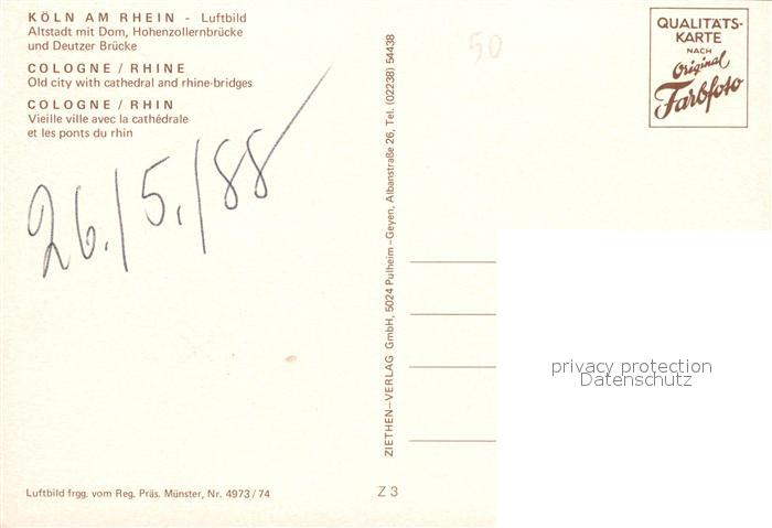 73174554 Koeln Rhein Fliegeraufnahme mit Dom Rhein postalisch nicht gelaufen Erhaltung siehe scans [LiesaD40] KatCode: 11110005315000