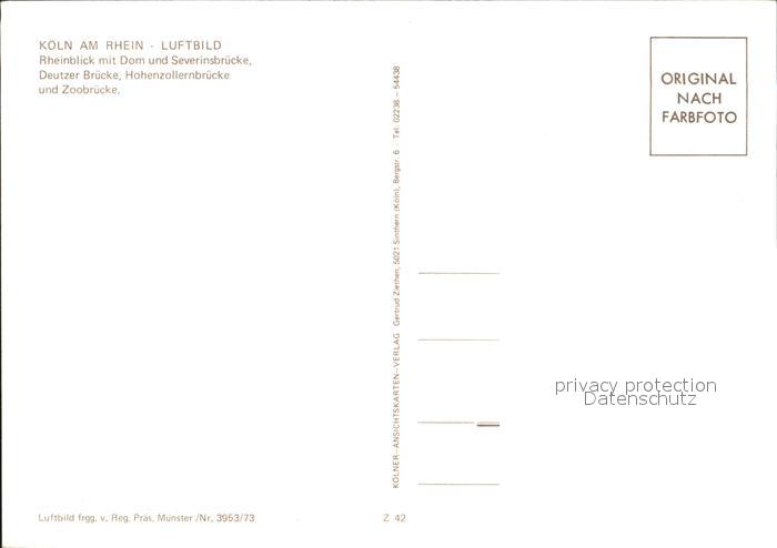 72247304 Koeln Rhein Fliegeraufnahme Rheinbruecken Dom postalisch nicht gelaufen Erhaltung siehe scans KatCode: 11110005315000