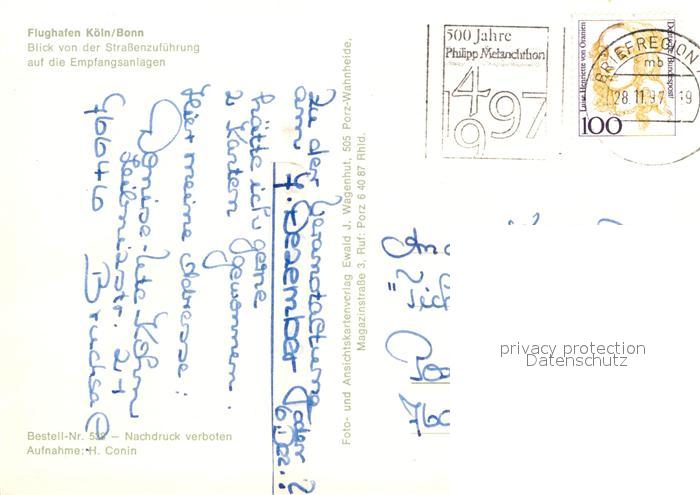 72929634 alte Postkarte Koeln Rhein Flughafen Koeln Bonn Empfangsanlage postalisch gelaufen Erhaltung siehe scans [KathaD81] KatCode: 11110005315000