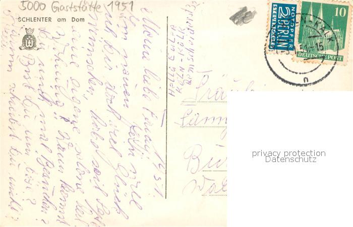 33702120 alte Postkarte Koeln Rhein Gaststaette Schlenter am Dom postalisch gelaufen Erhaltung siehe scans [WerneD78] KatCode: 11110005315000