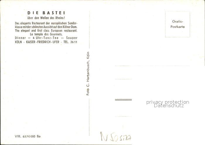 72017650 Koeln Rhein Gourmet Tempel Die Bastei postalisch nicht gelaufen Erhaltung siehe scans KatCode: 11110005315000