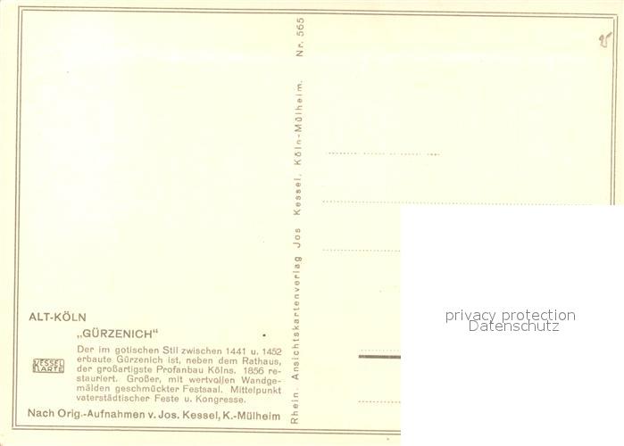 73333151 Koeln Rhein Guerzenich Alt Koeln postalisch nicht gelaufen Erhaltung siehe scans [WerneD78] KatCode: 11110005315000