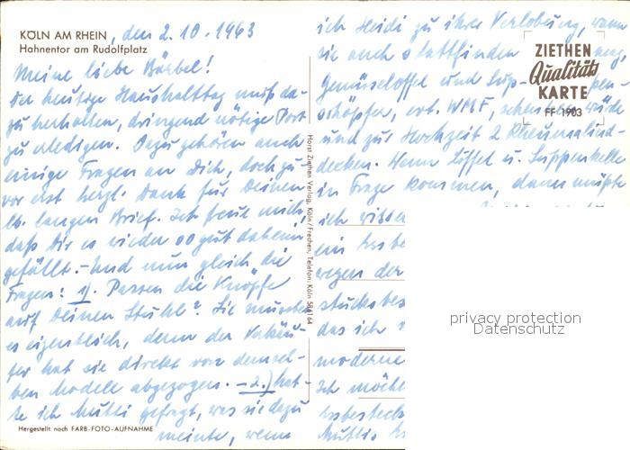72591767 Koeln Rhein Hahnentor am Rudolfplatz postalisch nicht gelaufen Erhaltung siehe scans [WerneD78] KatCode: 11110005315000