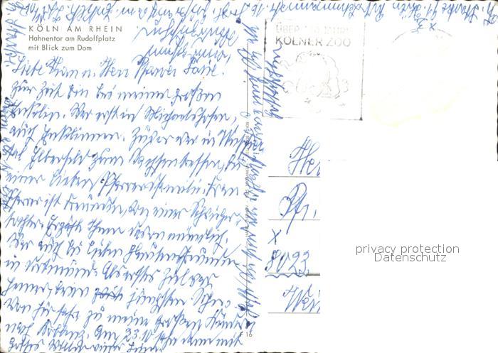 72359629 alte Postkarte Koeln Rhein Hahnentor Rudolfplatz Dom postalisch gelaufen Erhaltung siehe scans KatCode: 11110005315000