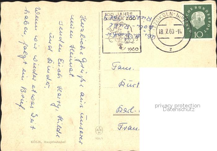 72369482 alte Postkarte Koeln Rhein Hauptbahnhof postalisch gelaufen Erhaltung siehe scans KatCode: 11110005315000
