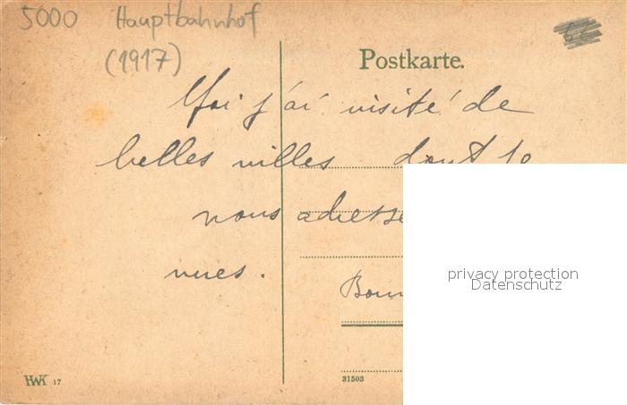 73694297 Koeln Rhein Hauptbahnhof postalisch nicht gelaufen Erhaltung siehe scans [WerneD78] KatCode: 11110005315000