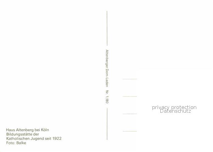 72714750 Koeln Rhein Haus Altenberg postalisch nicht gelaufen Erhaltung siehe scans [FriedD77] KatCode: 11110005315000