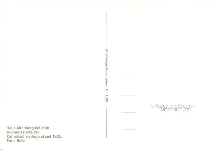 73711954 Koeln Rhein Haus Altenberg postalisch nicht gelaufen Erhaltung siehe scans [LiesaD40] KatCode: 11110005315000