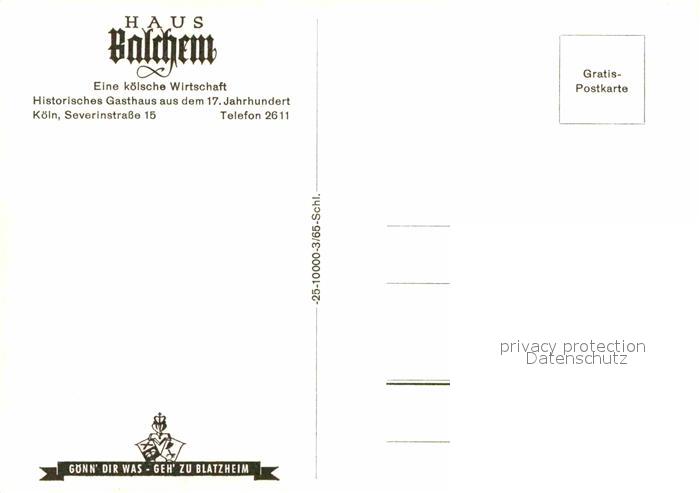72686608 Koeln Rhein Haus Balchem postalisch nicht gelaufen Erhaltung siehe scans [LiesaD40] KatCode: 11110005315000