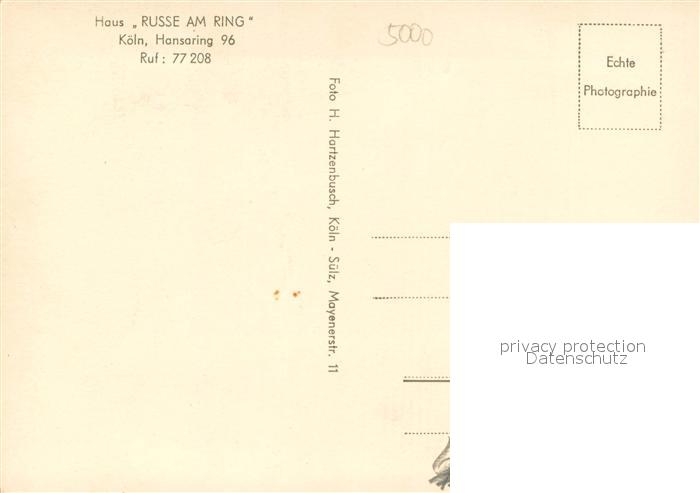 33702833 Koeln Rhein Haus Russe am Ring Bar postalisch nicht gelaufen Erhaltung siehe scans [WerneD78] KatCode: 11110005315000