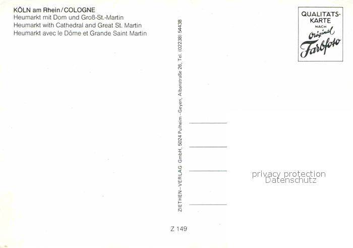 72792145 Koeln Rhein Heumarkt Dom Gross-St.Martin postalisch nicht gelaufen Erhaltung siehe scans [LiesaD40] KatCode: 11110005315000