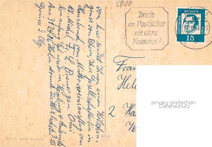 72886478 alte Postkarte Koeln Rhein Hohe Strasse Innenstadt postalisch gelaufen Erhaltung siehe scans [FriedD77] KatCode: 11110005315000