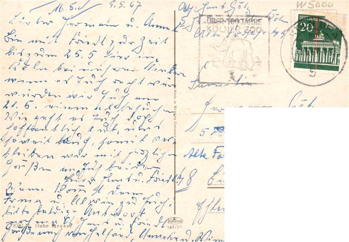 73908017 alte Postkarte Koeln Rhein Hohe Strasse postalisch gelaufen Erhaltung siehe scans [WerneD78] KatCode: 11110005315000